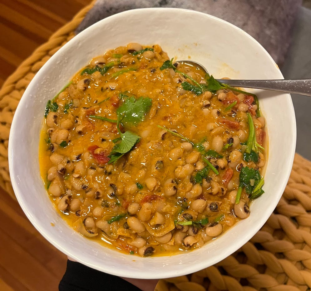 January 1st: Marcus Samuelsson’s Black Eyed Peas with Coconut Milk and Berbere: I make these every year, and it’s just a very good recipe. You can swap out the BEPs if you don’t like them, but the Rancho Gordo ones are delicious.