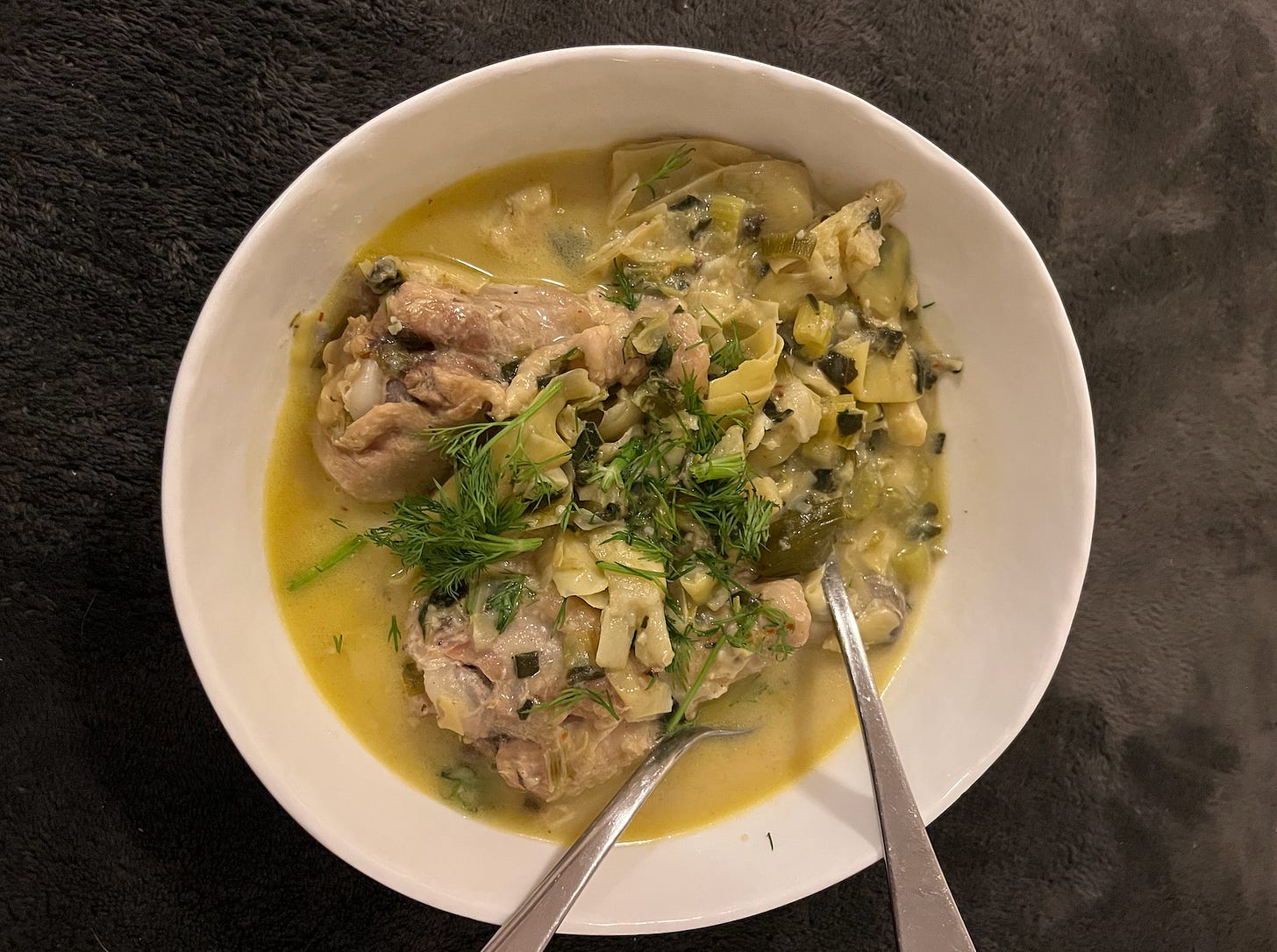 January 2nd: Chicken Artichoke Spinach Stew I riffed off of a few versions of this recipe - a little chicken, onion, white wine, frozen artichokes, better than bouillion, and lemon. The secret ingredient was a Trader Joe’s frozen spinach artichoke cube at the end.